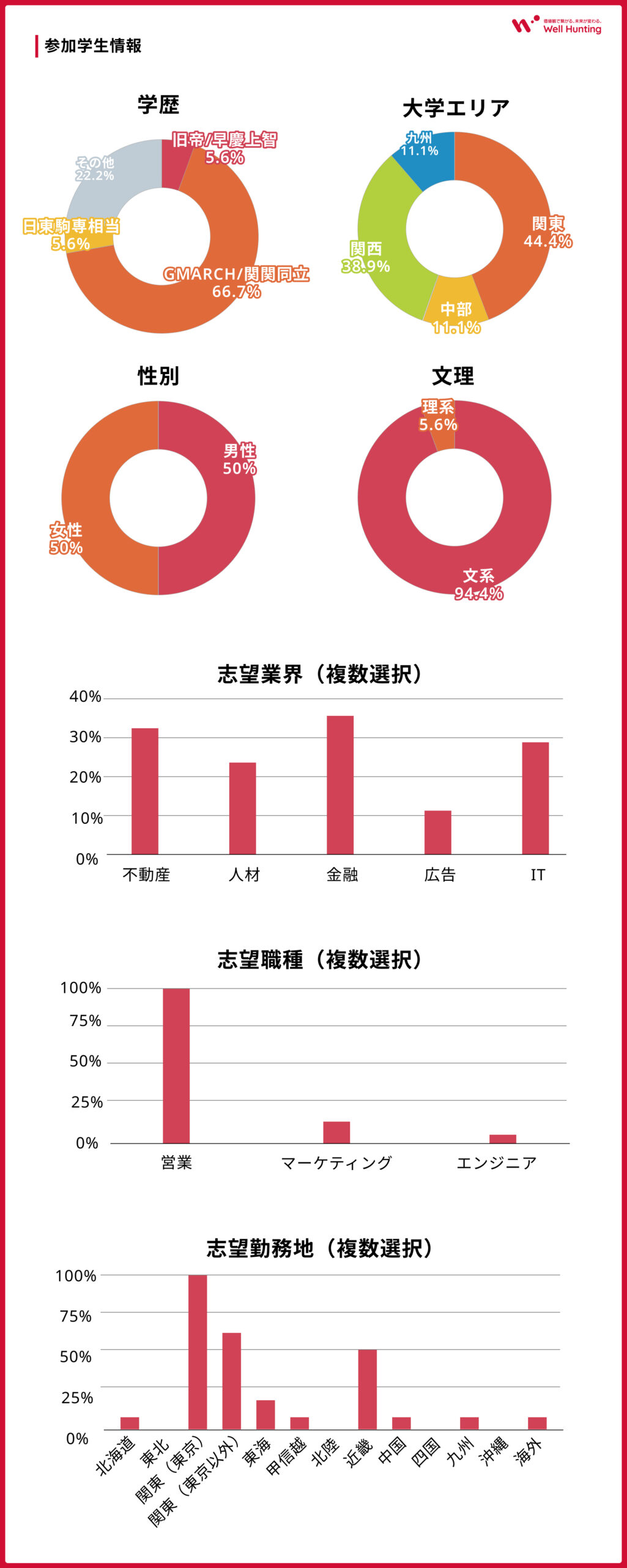 以下、参加学生の学歴や志向性のデータです。