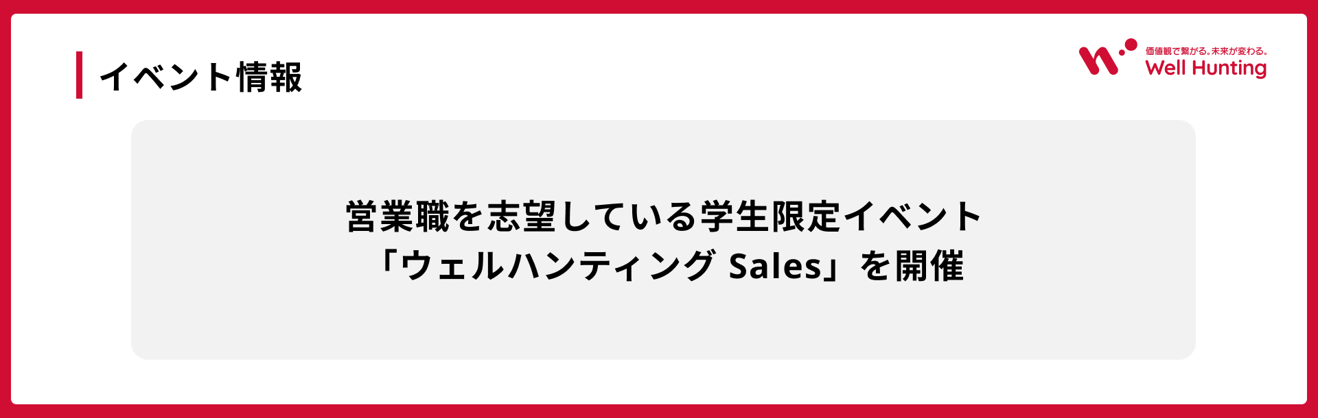 今回は9月13日に開催されました、ウェルハンティング Salesのイベントレポートになります!