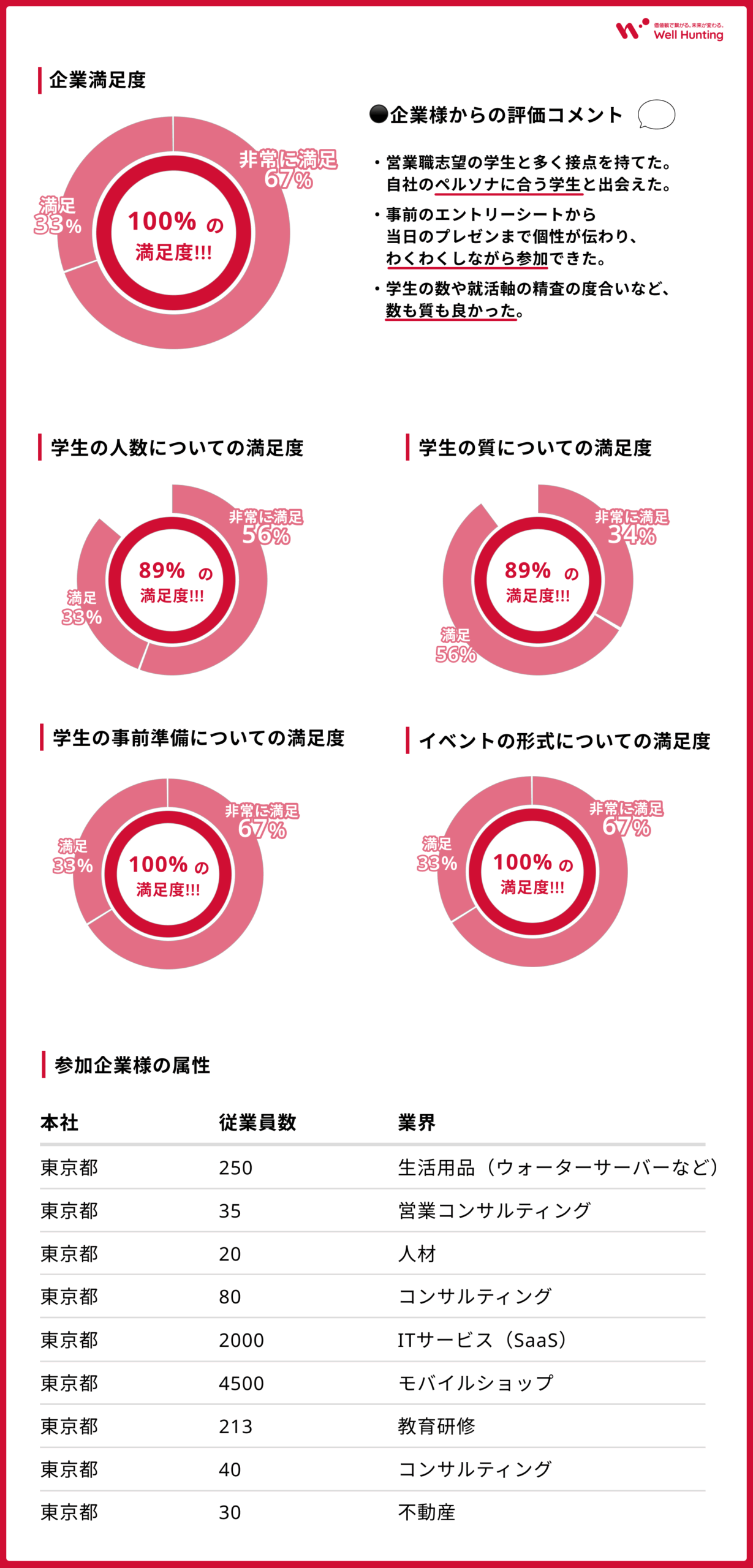 100%の企業様に満足していただくことができました!